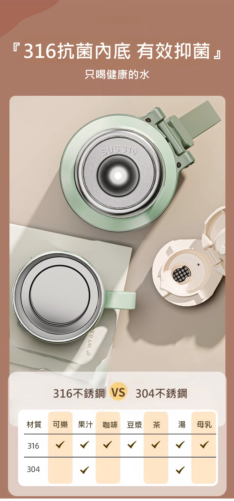【茶水分離長保溫】316不鏽鋼碗蓋保溫杯