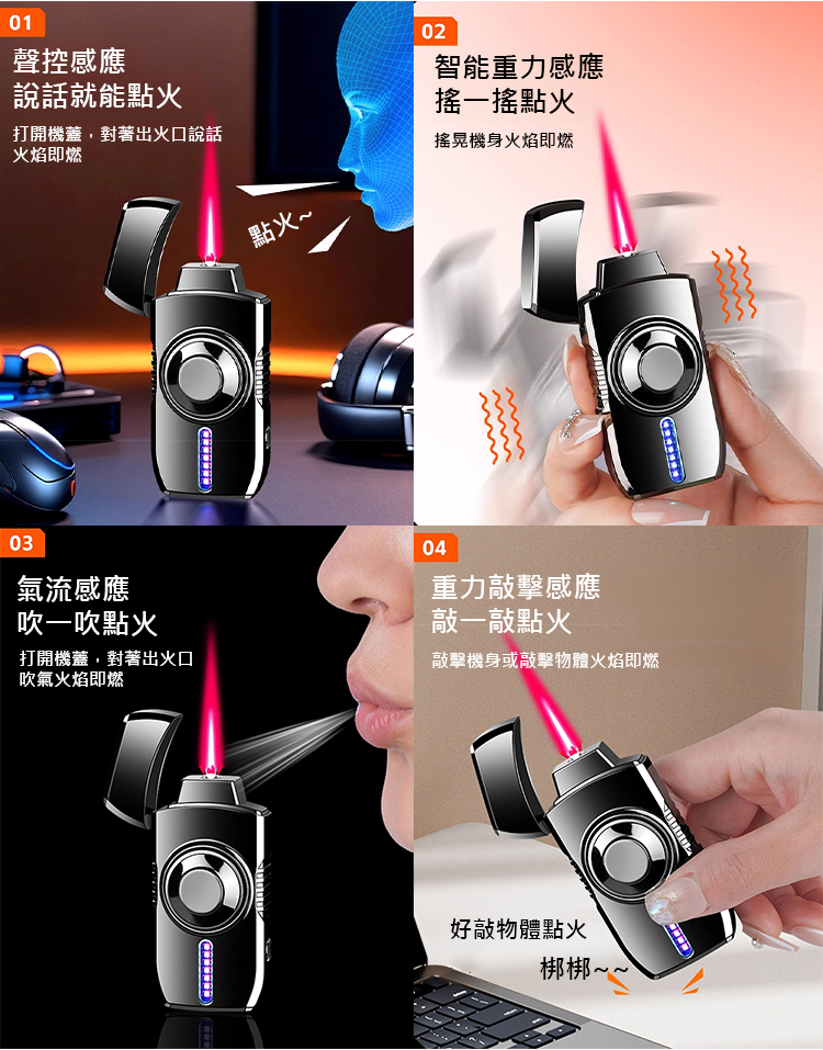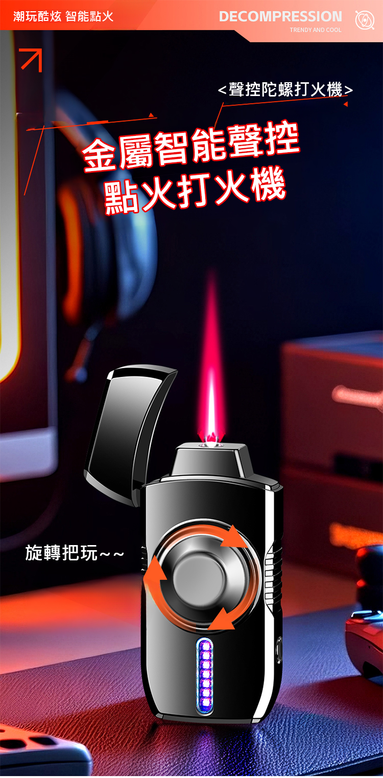 【多重酷炫燈光】金屬智能聲控點火打火機